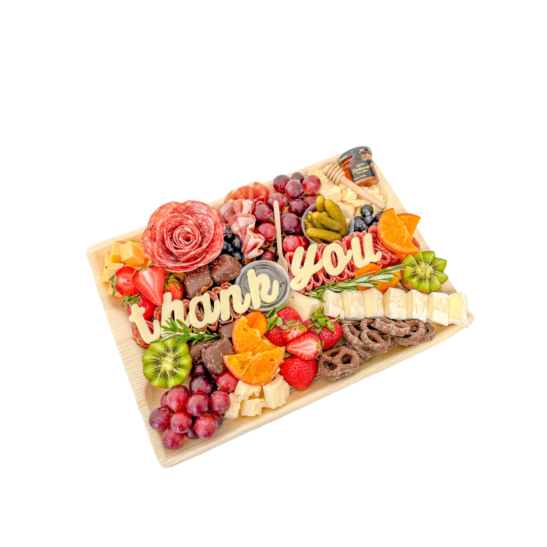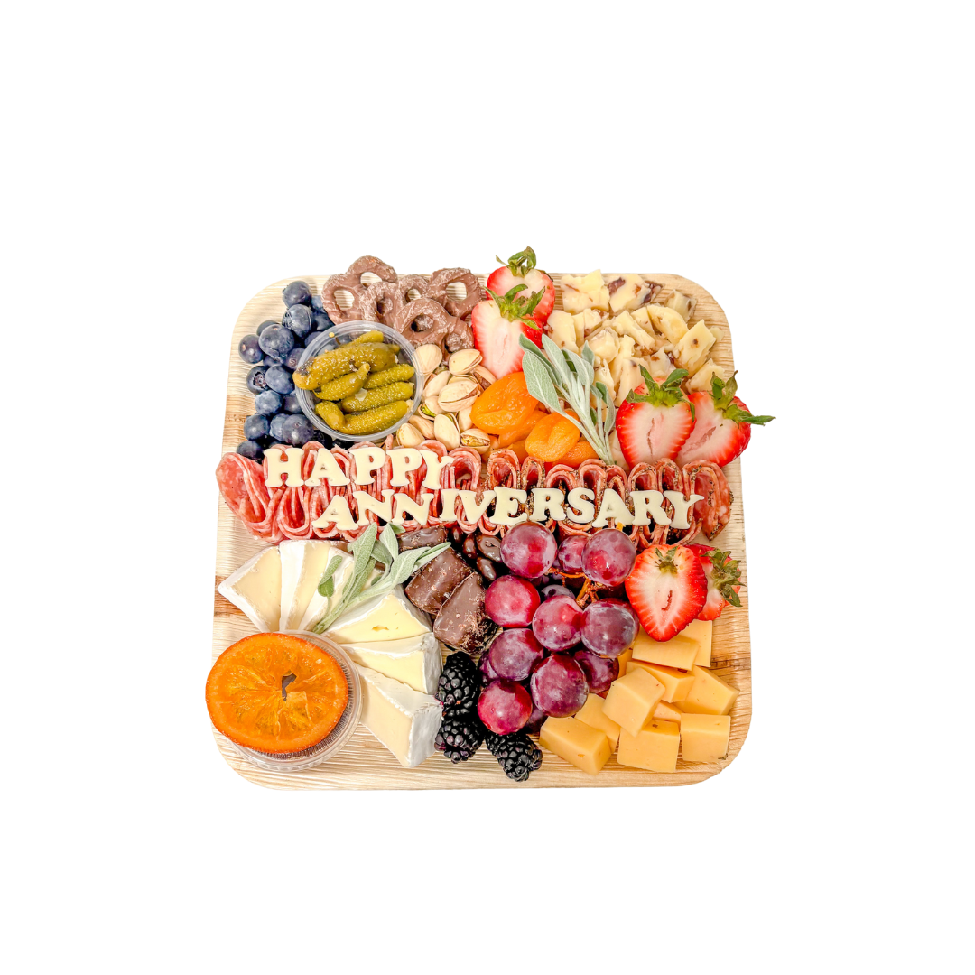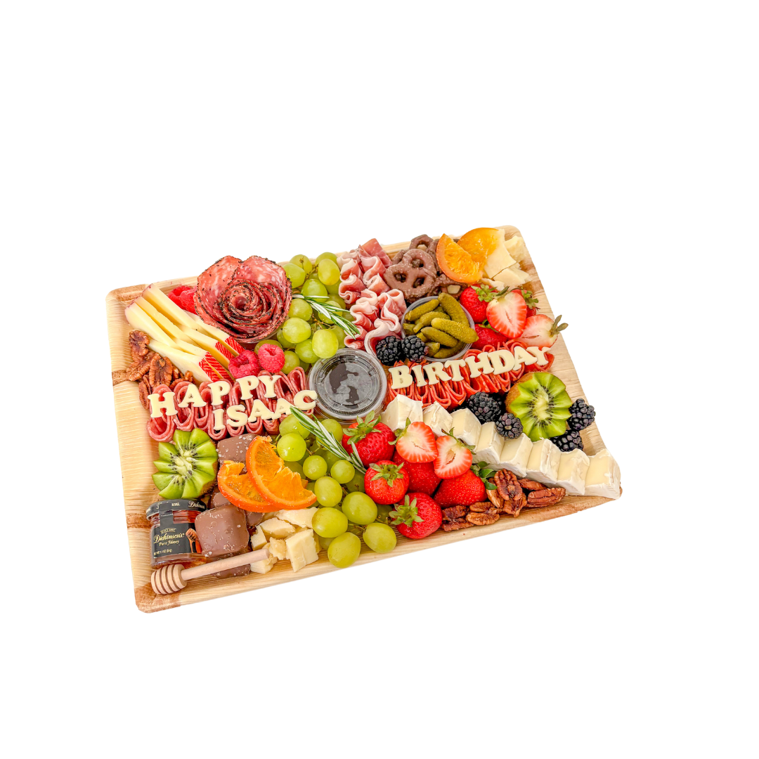 Celebrating a birthday, anniversary, or other special occasion? Add custom text to add that extra special touch to your charcuterie board!
